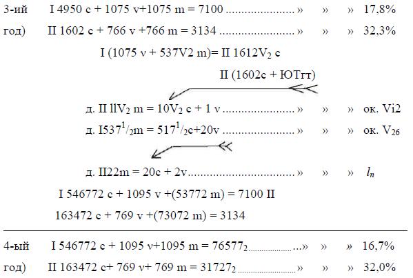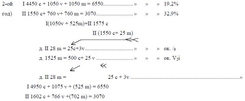 Понятно уже само собою, что если внести это изменение в схему, то получится более быстрое возрастание средств производства сравнительно с предметами потребления. Тем не менее, мне кажется, не лишним будет привести этот расчет, во-первых, для наглядности, а, во-вторых, для предупреждения возможных неправильных выводов из этой посылки.