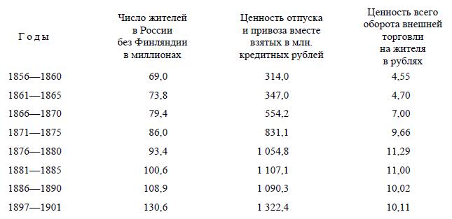 Как известно, товарное обращение предшествует товарному производству и составляет одно из условий (но не единственное условие) возникновения этого последнего. В настоящей работе мы ограничили свою задачу разбором данных о товарном и капиталистическое производстве и потому не намерены подробно останавливаться на важном вопросе о росте товарного обращения в пореформенной России. Для того, чтобы дать общее представление о быстроте роста внутреннего рынка, достаточно нижеследующих кратких указаний.