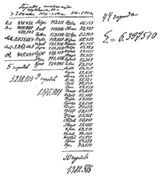 Группировка городов Европейской России, сделанная В. И. Лениным по данным переписи населения 1897 г.