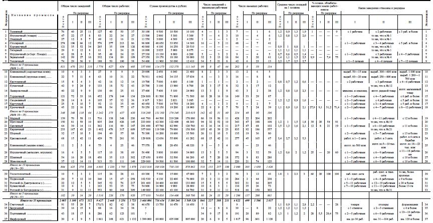 2) Промыслы размещены в порядке возрастания числа рабочих (и семейных и наемных вместе), приходящегося в среднем по всему промыслу на одно заведение.