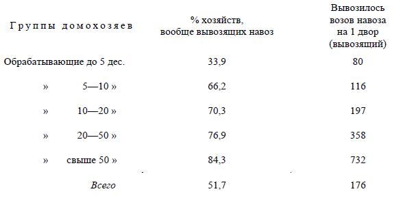 Весьма интересны подворные данные об удобрении земли, приводимые пермскими статистиками. Вот результат обработки этих данных{41}: