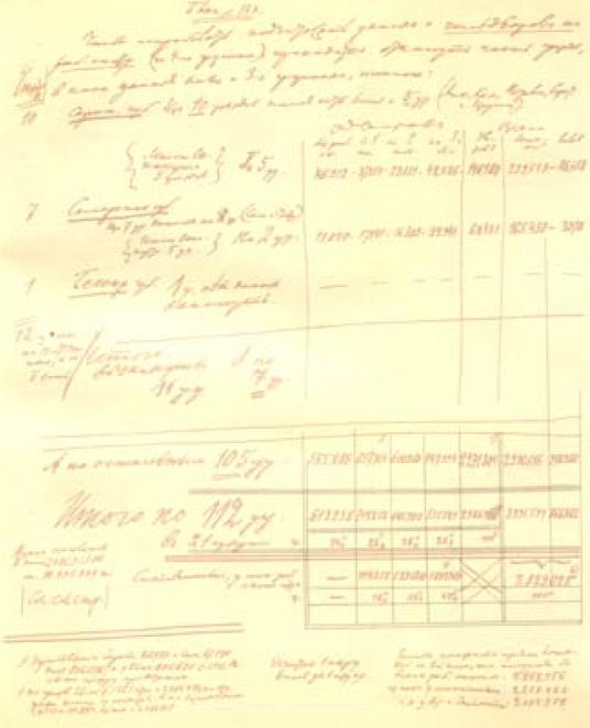 Страница тетради В. И. Ленина с выписками и расчетами из книги Н. А. Благовещенского «Сводный статистический сборник» (1893 г.)