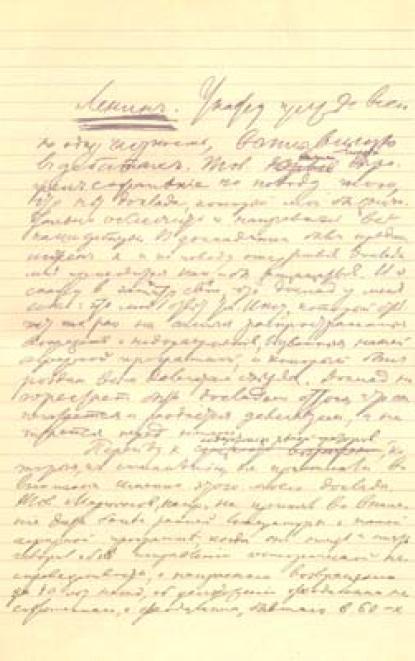 Первая страница рукописи речи В. И. Ленина на II съезде РСДРП при обсуждении аграрной программы 31 июля (13 августа) 1903 г.