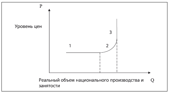 Из мировой истории выхода различных стран из кризиса можно сделать вывод: когда государство испытывает значительные экономические трудности, вмешательство – необходимая мера, которая помогает справиться с экономическим кризисом. Рыночные механизмы работают только на определенном отрезке времени, т. е. тогда, когда экономика вошла в стадию экономического роста. Рыночные механизмы также могут способствовать возврату к экономическому росту, в случае небольшого замедления экономического развития экономики, но только в том случае, когда экономика находится на отрезке 2 (рис. 5).