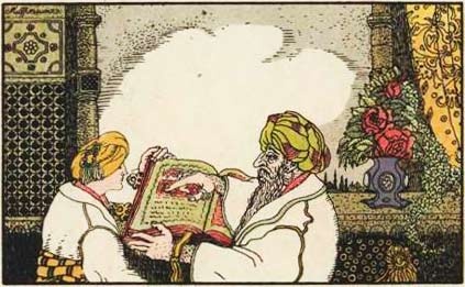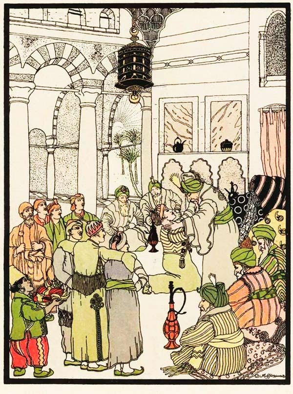 Сказав, что его скоро отвезут к отцу, а иначе он навсегда останется у них. Но они не сдержали слова. Долго плыло судно и, наконец, пристало к берегам Франции. Между тем, Альмансор уже научился несколько понимать их язык, что ему пришлось очень кстати там, где никто не знал его языка. После долгого пути, они прибыли в большой город, где Альмансор был поручен и отдан на воспитание какому-то врачу, начавшему учить мальчика европейским обычаям; он одел его в узкое и неловкое платье, запретил ему кланяться, скрестя руки, а вместо того приказывал одной рукой снимать с головы шляпу, а другую прижать к себе и шаркнуть ногой. Он не смел сидеть, поджав ноги, а должен был влезть на высокий стул и спустить ноги вниз. С кушаньем было также большое затруднение: всякий кусок надо было наперед насадить на железную вилку и потом с нее уже в роте. Альмансор вовсе не смел говорить на своем языке, а только по-французски; пожалуй, он позабыл бы родной языке, если бы не один ученый, живший в томе же городе. Это был человек пожилой, знавший многие восточные языки: арабский, персидский, китайский и другие. Вот он-то призывал к себе несколько раз в неделю маленького Альмансора и угощал его дорогими и редкими блюдами. Мальчику казалось, будто он снова дома. Старик велел даже сшить ему платье, какое носят вельможи египетские, и каждый раз, как Альмансор к нему приходил, он наперед одевал его в это платье и затем отправлялся в «Малую Аравию», как называлась одна из его комнат.