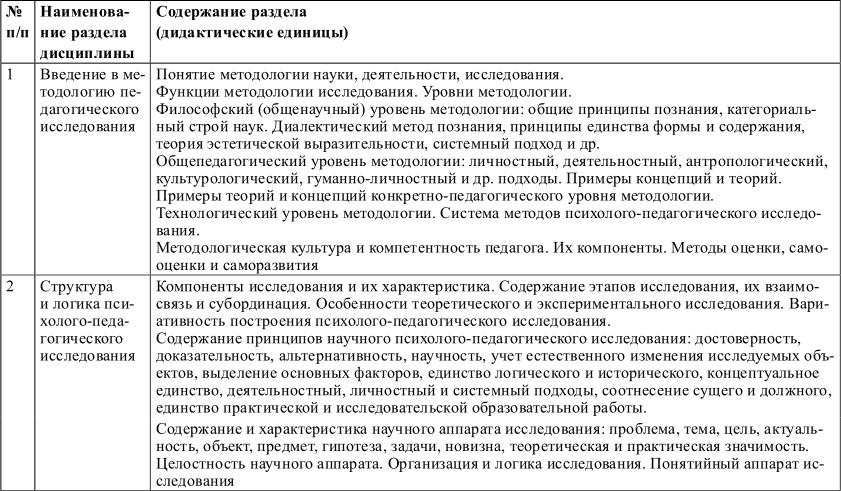 Обратимся к образовательным результатам модуля. Действующий в настоящее время ФГОС ВПО 3+ по направлению «Психолого-педагогическое образование» среди предлагаемых видов профессиональной деятельности, к которым готовятся выпускники программ магистратуры, предусматривает научно-исследовательскую деятельность и конкретизирует ее соответствующими профессиональными компетенциями (ПК-33 – ПК-41). То есть содержание модуля «Основы научно-исследовательской работы психолого-педагогического направления» соответствует базовой части федерального государственного образовательного стандарта высшего профессионального образования психолого-педагогического направления и обеспечивает формирование профессиональных компетенций в области научно-исследовательской деятельности.