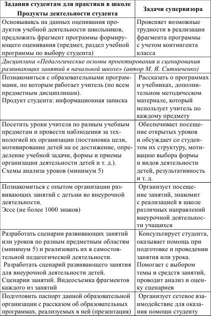 1) на этапе уточнения программы практики. При этом важно, чтобы количество, направленность и содержание этих заданий согласовывалось с самими студентами, а также с супервизорами стажировочной площадки;