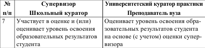 Разграничение функционалов школьного и университетского куратора практики приведено в таблице 9.