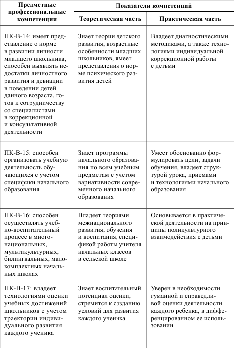 Высокий уровень сформированности компетенций предполагает усвоение базовых психолого-педагогических знаний, свободное владение набором профессиональных умений, высокую личностную мотивацию педагогического труда, связанную с проявлением способностей к творческой самореализации в педагогической деятельности, дающую эмоциональное удовлетворение и чувство личной уверенности. Средний уровень сформированности компетенций предполагает наличие базовых знаний, владение педагогическими умениями, грамотное их использование в учебно-воспитательном процессе без творческой модернизации и инициативы. Удовлетворительный уровень сформированности компетенций связан с наличием профессиональных знаний, владеем необходимыми педагогическими умениями, которые используются в основном в действиях по образцу, без решения конкретных творческих задач.