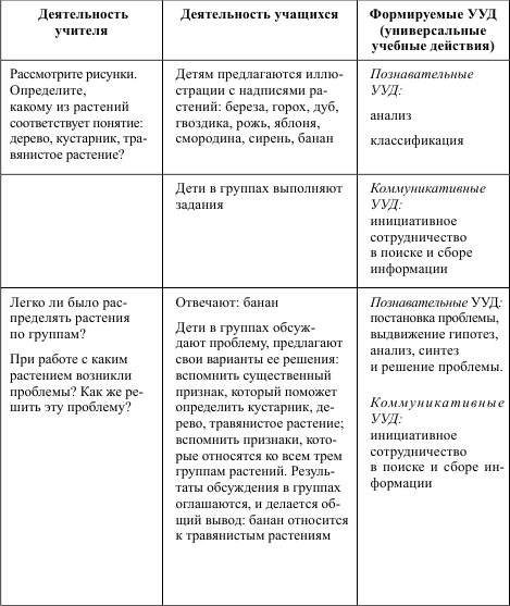 Представленный фрагмент урока наглядно раскрывает его «второй план» – направленность действий учителя на формирование определенных универсальных учебных действий, и демонстрирует как постановку учебной задачи, так и организацию самостоятельной поисковой деятельности детей, результатом которой становится приобретение нового знания.