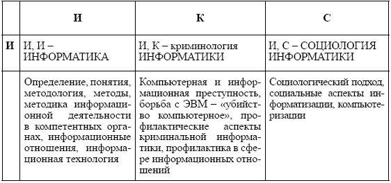 Рассматривая соотношение информатики и криминологии, замечаем, что и та, и другая дисциплины могут вычленить достаточно самостоятельную область исследования: криминологическую информатику и информационную криминологию. Несмотря на синонимичность понятий, есть отличие в подходах, используемых вновь создаваемыми отраслями для решения криминологической проблематики.