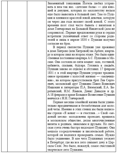 – сформировать навыки системного осмысления биографического материала, освещающего проживание А.С. Пушкина в Москве, значения московских эпизодов для творческой эволюции поэта;