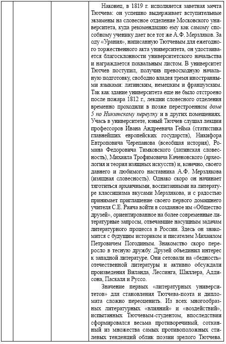 – развить навыки критического осмысления и анализа влияния московских литературных и культурных связей на творчество Ф.И. Тютчева;