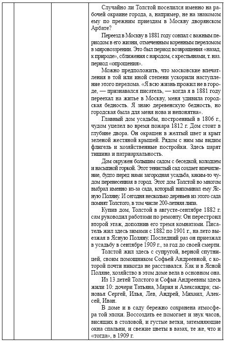 – сформировать навыки системного осмысления биографического материала, освещающего проживание Л.Н. Толстого в Москве, значения московских эпизодов для творческой эволюции писателя;