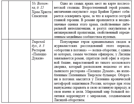 1. Амзин А. Город-сказка: путеводитель по пелевинской Москве // The village [Электронный ресурс] Код доступа: http://www.the-village.ru/village/weekend/weekend/123327-pelevin (дата обращения 01.04.2015).