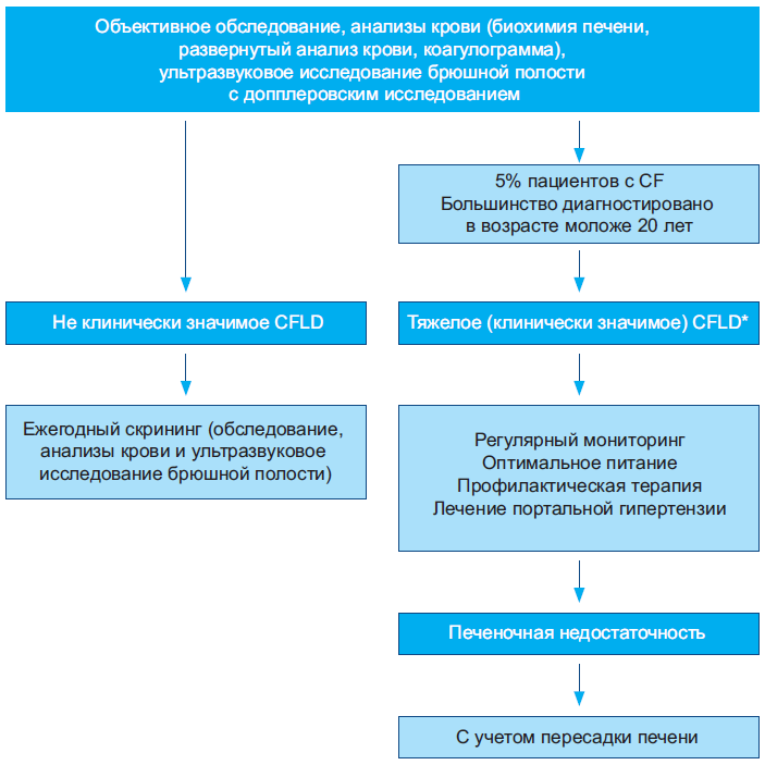 Рис. 8. Обзор лечения обусловленного муковисцидозом заболевания печени (CFLD). * Цирроз и портальная гипертензия.