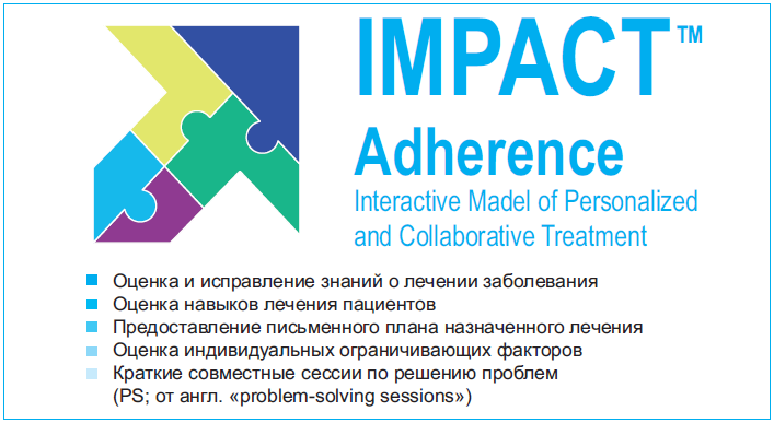 Рис. 10. Пять компонентов Интерактивной модели персонализированного и совместного лечения (IMPACT; от англ. Interactive Model of Personalized and Collaborative Treatment) – Соблюдения режима лечения.