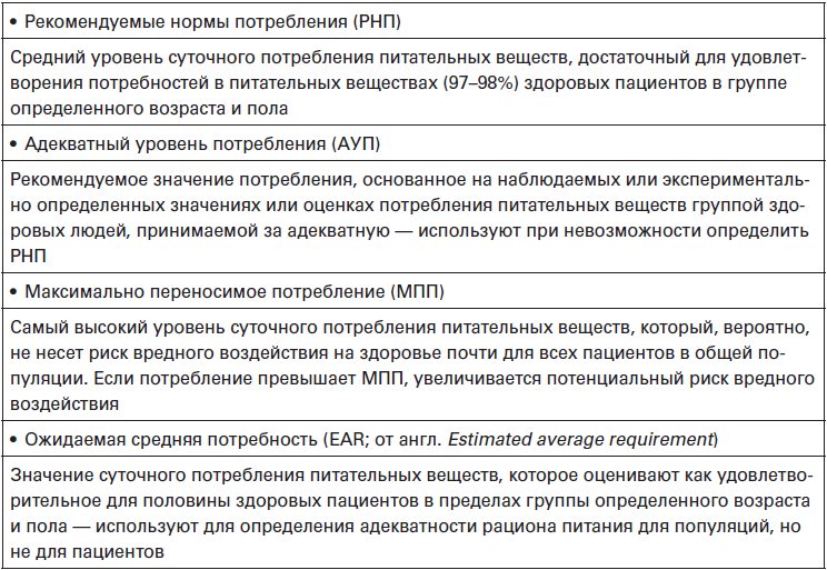 Таблица 7.1. Категории рекомендаций по потреблению с пищей референтных значений питательных веществ