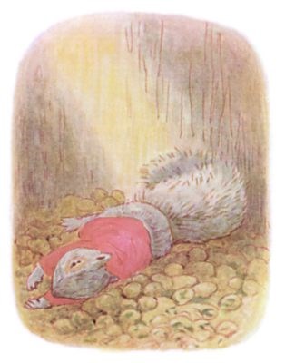 Goody Tiptoes passed a lonely and unhappy night. Next morning she ventured back to the nut-bushes to look for him; but the other unkind squirrels drove her away.