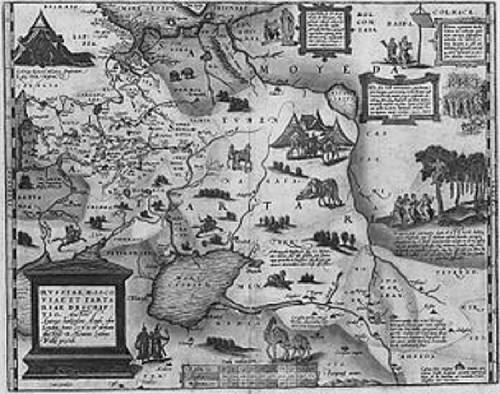 Эта карта была включена в первый печатный Атлас мира нидерландского картографа А. Ортелия в 1570 году. Но изображённое на гравюре на меди, разумеется, не карта – это понятийный образ, который витал в сознании образованных людей того времени, прежде всего европейцев, то бишь современников Ивана Грозного.