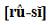 где первый слог [rû] – ударный, и слогообразующий твёрдый гласный [û] находится под нисходящей интонацией, о чём свидетельствует акцентная система в парадигме: рУсь – русИ – рУсью; второй слог [sĭ] – безударный, и в нём слогообразующим является краткий мягкий редуцированный гласный [ĭ] (= 1/3-1/4[и]).