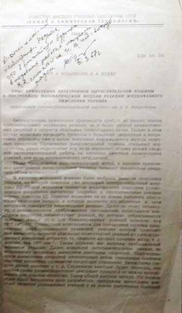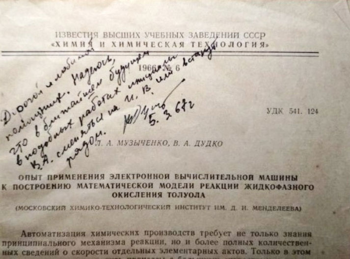 Работа, проделанная Виктором была выполнена в 1966 году, и включена была дополнительно в основную большую работу Л. А. Музыченко.
