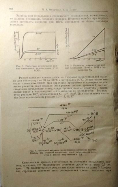 Для отработки программы и проверки надёжности расчётов нами вначале была решена система уравнений, соответствующая начальному этапу, когда промежуточные продукты – бензиловый спирт и бензальдегид – практически не расходуются. Температура реакции 180 гр., концентрация О2 1018 1/ см3. Для составления системы были использованы реакции 1,3–13, 16, 17.
