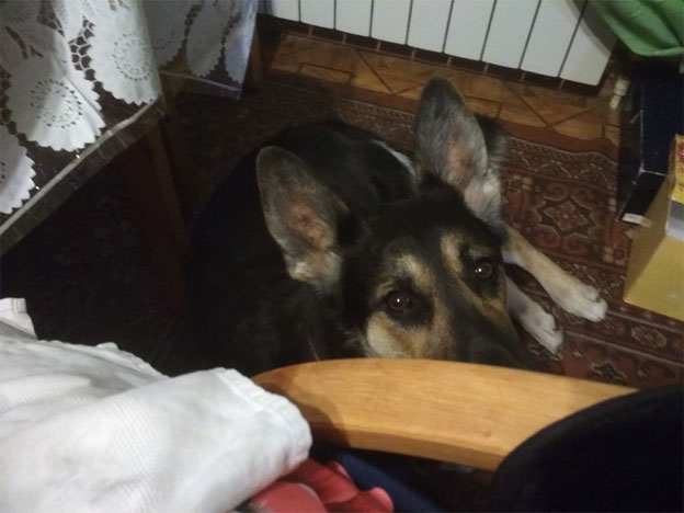 А это – мой Тобик. Беспризорный щенок живёт у меня уже год с не большим. Это на снимке он большой, на самом деле он меньше средней овчарки. Мой защитник. Подрос. Хулиган по натуре. Обнаглевший беспредельник. Меня принимает за вкусную мясную закуску к сухому кому и за обслуживающий его – «персонал».
