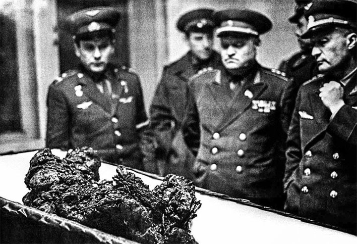 Останки советского космонавта Владимира Комарова, погибшего в катастрофе спускаемого аппарата после полета на космическом корабле «Союз-1», 1967 год.
