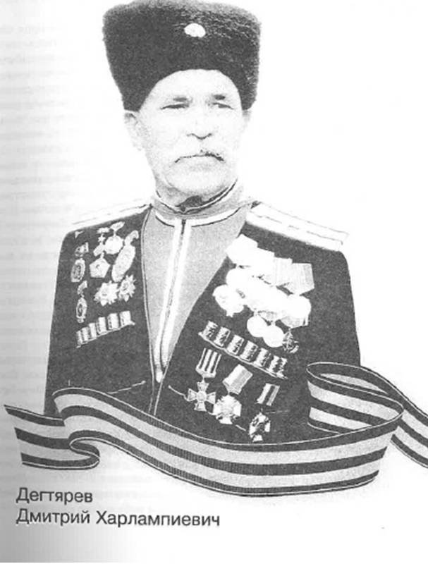 Когда лейтенант Дегтярев пришел в себя, было тихо, только слышались стоны раненых. По лицу и рукам текла кровь. Выбрался из-под замполита и увидел его развороченную спину. Брошенная с немецкого танка граната разорвалась над ними, замполит ценой своей жизни спас молодого лейтенанта. Мелкие осколки впились в ноги и руки Дмитрия. Каждое утро он ходил на перевязку в медпункт, где санинструктор выщипывал осколки и прижигал йодом. Это было третье ранение, хотя и легкое, но Дмитрий несколько дней не мог сгибаться и сидеть на лошади. Половину своего сабельного взвода потерял в тех боях лейтенант Дегтярев, но оборонительный рубеж был удержан.