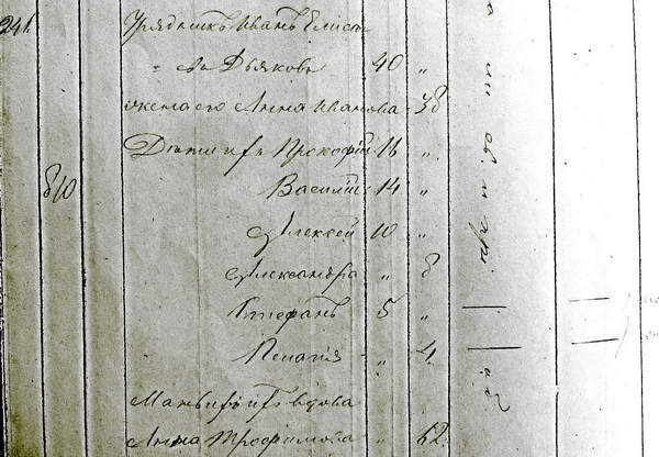 У Елисея вскоре тоже родится сын, которого назовут Иваном[1140] – и с него в родословном древе этой семьи начнут появляться ребусы, которые не так просто разгадать спустя два века. В 1819-20 годах у Елисея Дьякóва родилось ещё двое сыновей-погодков: старшего назвали достаточно редким именем Зеновий[1142] (так в источниках, что позволяет предположить рождение мальчика осенью, близко ко дню памяти священномученика Зиновия 12 ноября), а младшего опять окрестили Иваном[338][1148]. Это не было ничем необычным, называли детей практически всегда по Святцам, не обращая внимания на то, что другие дети в семье носят те же имена. Около 1823 года у Елисея появился и третий сын Иван[1144]. А последний из известных братьев Дьякóвых-Елисеевичей, Моисей[1146], появится на свет только в 1831 году – что, несомненно, предполагает рождение в восьмилетнем промежутке других детей. Казачьи семьи тогда были большими, редкая не могла предъявить миру как минимум 5–6 детишек. В 1823 году в Марьинской у Ивана Михайловича и Анны Митрофановны[1500] Чеботарёвых родилась дочь Анна[1149], позже она станет женой Ивана Дьякóва-среднего[339]. Ещё у одной семьи в Марьинской, казака Павла Акулова[1703] (? – до 1848) и законной жены его Степаниды Романовны[1704] (1795-до 1859), родился сын Иван-старший[1509], следом появился Иван-младший[340][1518], а в 1825 году – Савелий[1511]. Потом у них родятся ещё Никита [1514] и Максим[1516], но Павел рано скончается или погибнет…