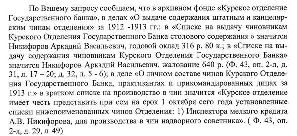 Сведения о службе А. В. Никифорова в Новом Осколе