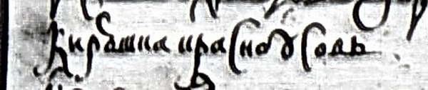 6-4: Казачей сын Якушко Кирилов сын Красноусов сказался, родом де он, Якушко, тарчанин, казачей сын. У него дети Матюшка осми лет,