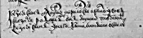 6-1: Казачей сын Матюшка Иванов сын Зубов сказался, родом де он, Матюшка, с Тары конного казака сын. У него сын Митька дву лет. А пашни и сенных покосов нет.