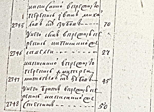 1-1: деревни Зубовой: Написанный в прежнюю перепись Иван Михайлов сын Зубов, 70 у него сын в прежнюю перепись написанный же Пантелей, 27