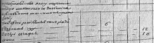У них дети: рожденные после ревизии Евдоким, 6 дочери: Агафья, 12, Анна, 10