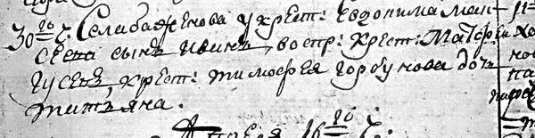 126-1: Марта 30-го, села Баженова у крестьянина Евдокима Моисеева сын Иван, восприемники: крестьянин Матфей Гусев, крестьянина Тимофея Горбунова дочь Татьяна