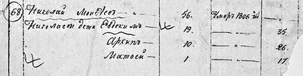 Николаевы дети: Евдоким, 35, Архип, 26, Матвей, 17