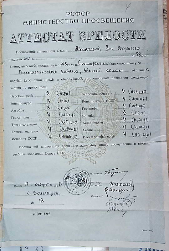 308 – Личное дело студентки З. П. Моисеевой. Омский медицинский институт. Архив