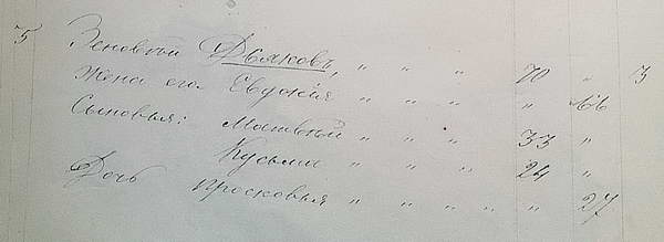 сыновья: Матвей, 33, Кусьма, 24, дочь Прасковья, 27