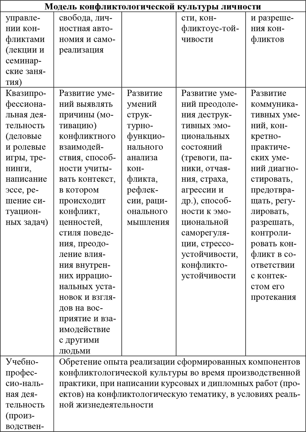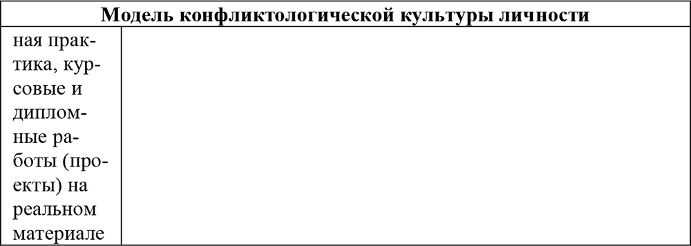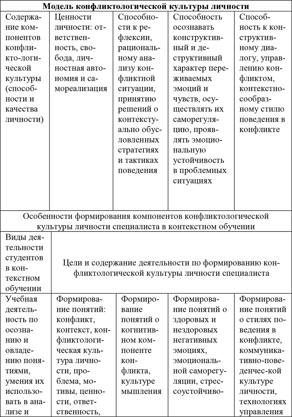 Таблица 10. Концептуальная модель формирования конфликтологической культуры личности специалиста в контекстном обучении