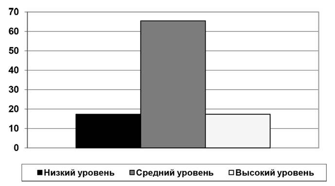 Из полученных результатов следует, что низкий уровень конфликтологической культуры выявлен у 17,3 % испытуемых, средний уровень – у 65,4 %, высокий уровень – у 17,3 %. То есть, распределение испытуемых по уровню развития конфликтологической культуры носило характер нормального.