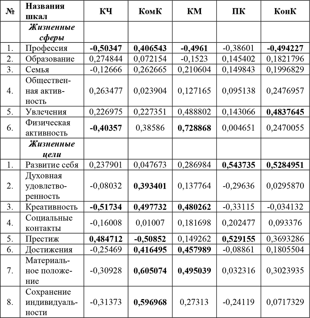 6.1.5. Взаимосвязи конфликтологической культуры личности с ценностными ориентациями
