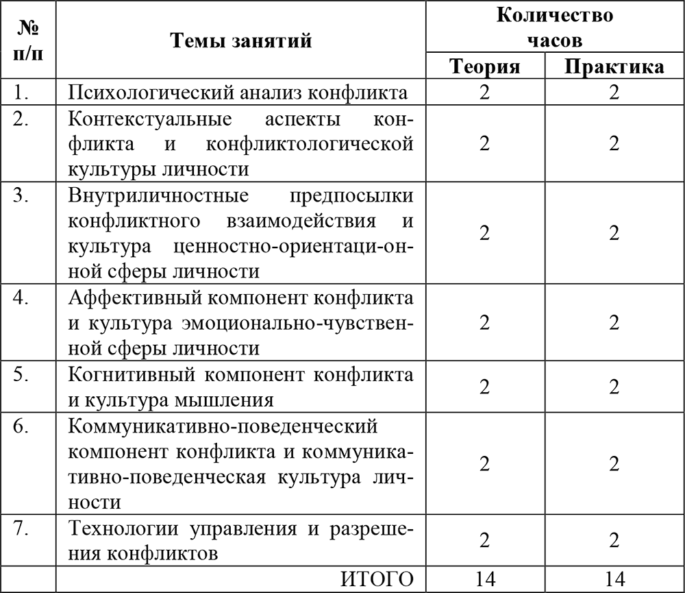 Приложение 1. Тематичеакий план тренинга конфликтологической культуры личности