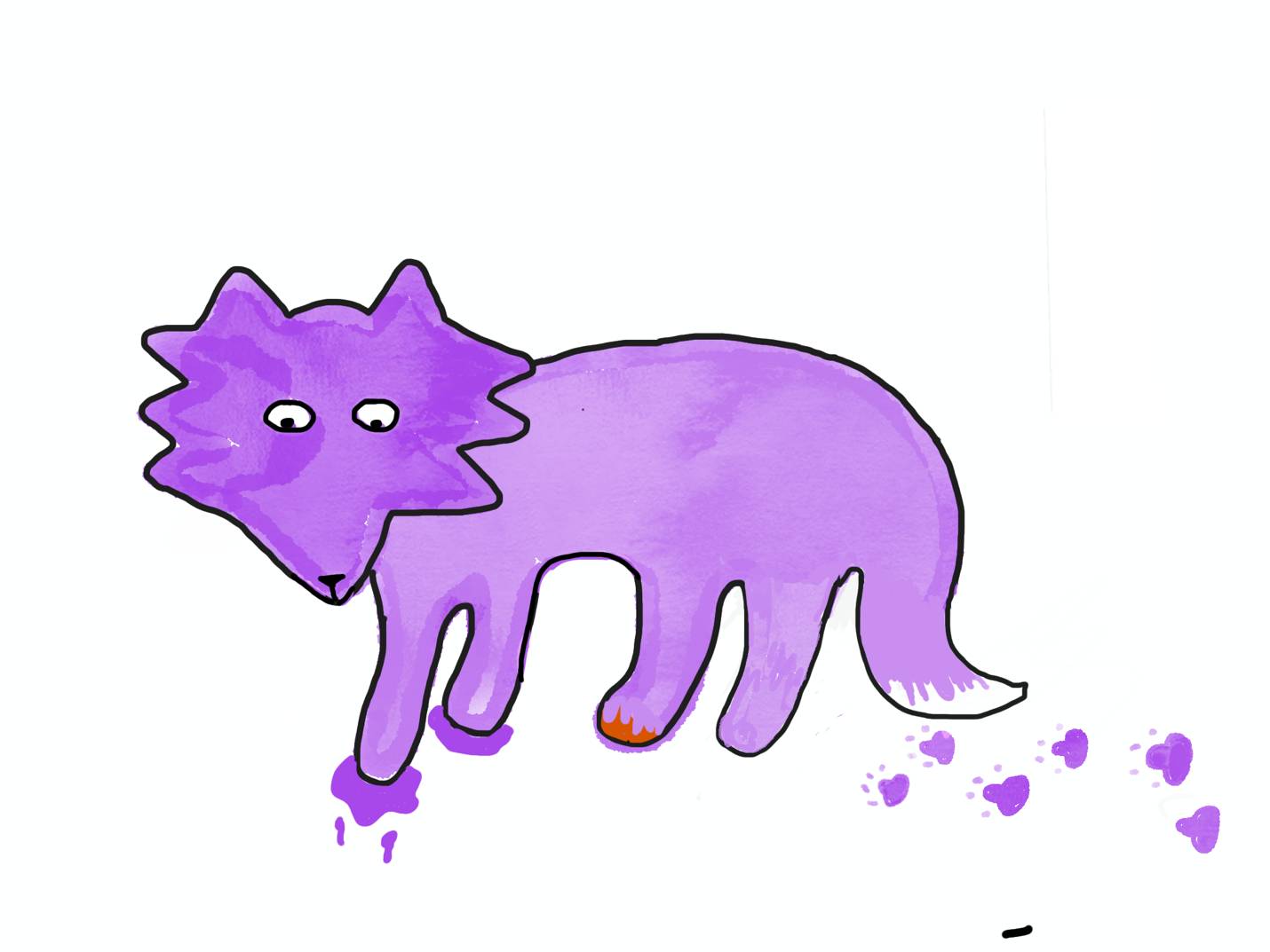 На даче я только отдыхал. Утром я сел на скамейку и начал рисовать. Рисовал я Макара, Дейзи и Пончика. А когда я прорисовывал лисий хвост, то понял, что лисёнка уже давно нет в комнате. Я повернулся и увидел его. Но это был не просто Макар, это был фиолетовый Макар!