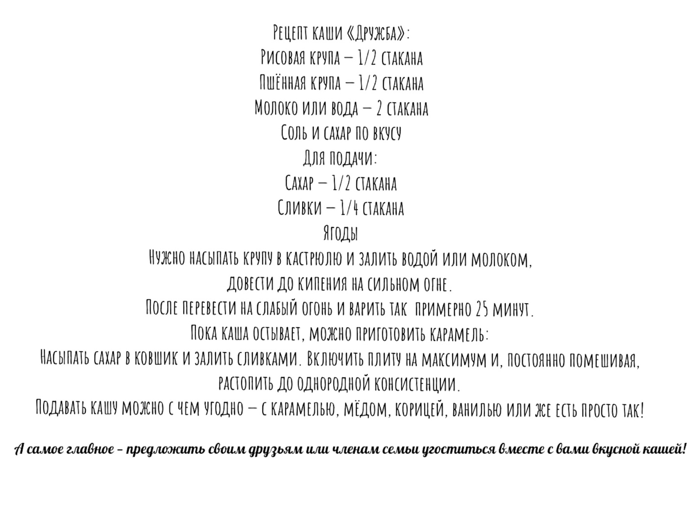 У меня осталось ещё немного каши, и я решил положить все остатки себе. Но тут прибежал Макар и посмотрел на меня умоляющими глазами, будто упрашивая меня положить ему вкусненького завтрака. Я всё-таки положил ему немного в пластиковую миску. Он схватил её в зубы и побежал в комнату. Я пошёл за ним и оказалось, что он решил поделиться кашей с друзьями – Дейзи и Пончиком. Я не стал его ругать, ведь не зря эта каша называется «Дружба».