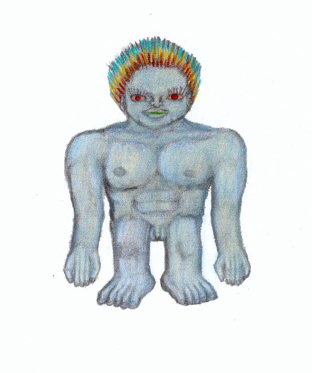 Он был очень маленького роста, наверное, 150 сантиметров, но самым поразительным было то, что он был такой же ширины, как и длины – как квадрат. Его голова была полностью круглой и сидела прямо на плечах. То, что с первого взгляда напомнило вождя индейцев, были его волосы, которые скорее походили на перья, окрашенные в желтый, красный и синий, а не на волосы. У него были красные глаза и «плоское» лицо, почти как у представителя монголоидной расы. У него не было бровей, но ресницы были в четыре раза длиннее моих. Ему дали халат, похожий на мой, только совсем другого цвета. Конечности, которые выглядывали из халата, были того же светло-голубого цвета, как и его лицо. Его Аура, местами серебристая, ярко сияла, а вокруг головы был насыщенный золотой ореол.