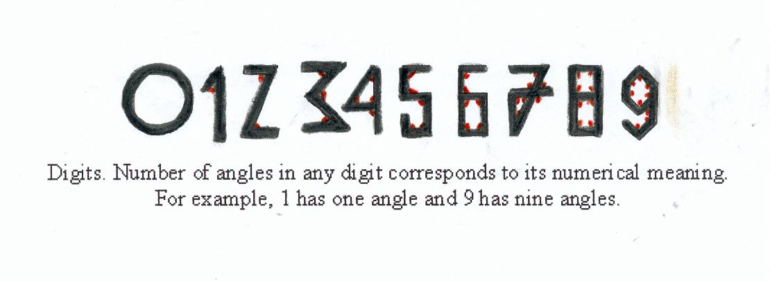 Надпись на картинке: число углов в каждой цифре соответствует её числовому значению. Например: 1 имеет один угол, а 9 имеет девять углов.