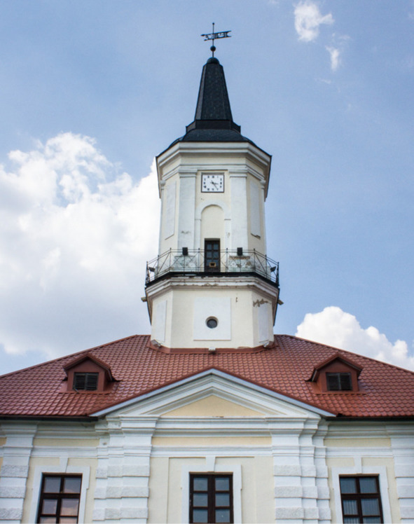 «Ратуша 18 века является гордостью и одной из главных достпримечательностей Шклова. Ее высота – 43 метра. Она немного похожа на могилевскую, но главное ее отличие – в наличии комплекса торговых рядов.