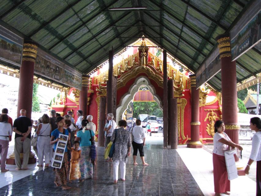 Роскошная огромная пагода Махамуни с 4-х метровой статуей Будды, самой почитаемой в стране. Не зря монахи каждое утро проводят омовение святого лика. Перед Учителем сидит много мужчин (женщины в стороне) в состоянии нирваны. Удивляет, как главный просветитель страны равнодушно созерцает на то, что абсолютно нищие люди отдают последние деньги на содержание и восхищение им.